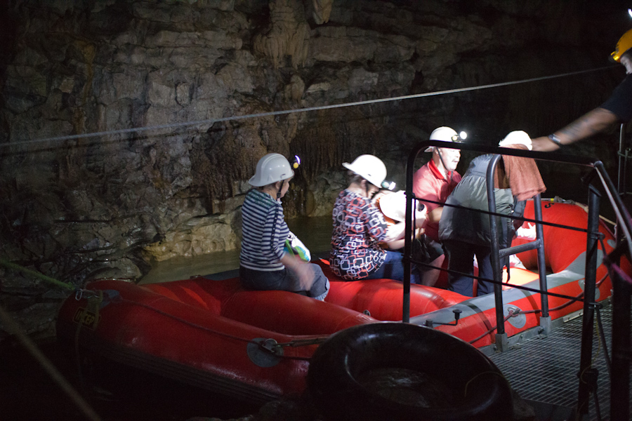 To see the finest glowworms in this cave, we were pulled by our guide along a fixed rope on this inflatable raft.