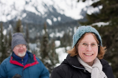 Tom was determined to get his folks down to Mt. Rainier National Park as part of their visit this Christmas, so even though the weather report was marginal at best, we loaded up the Suby with all of our winter gear, and headed south. We arrived at Paradise, strapped on our snowshoes and headed toward the mountain. Rainier was mostly visible, which we would take as a win.